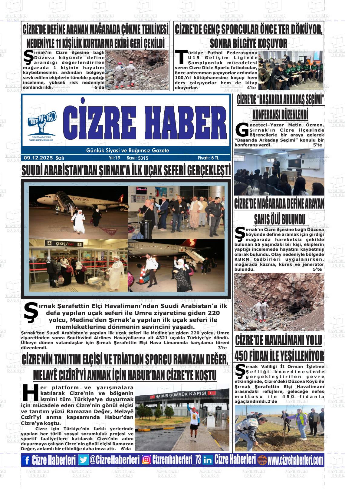 Şırnak Yerel Gazeteleri 03 Mart 2026, Salı Günü Manşeti