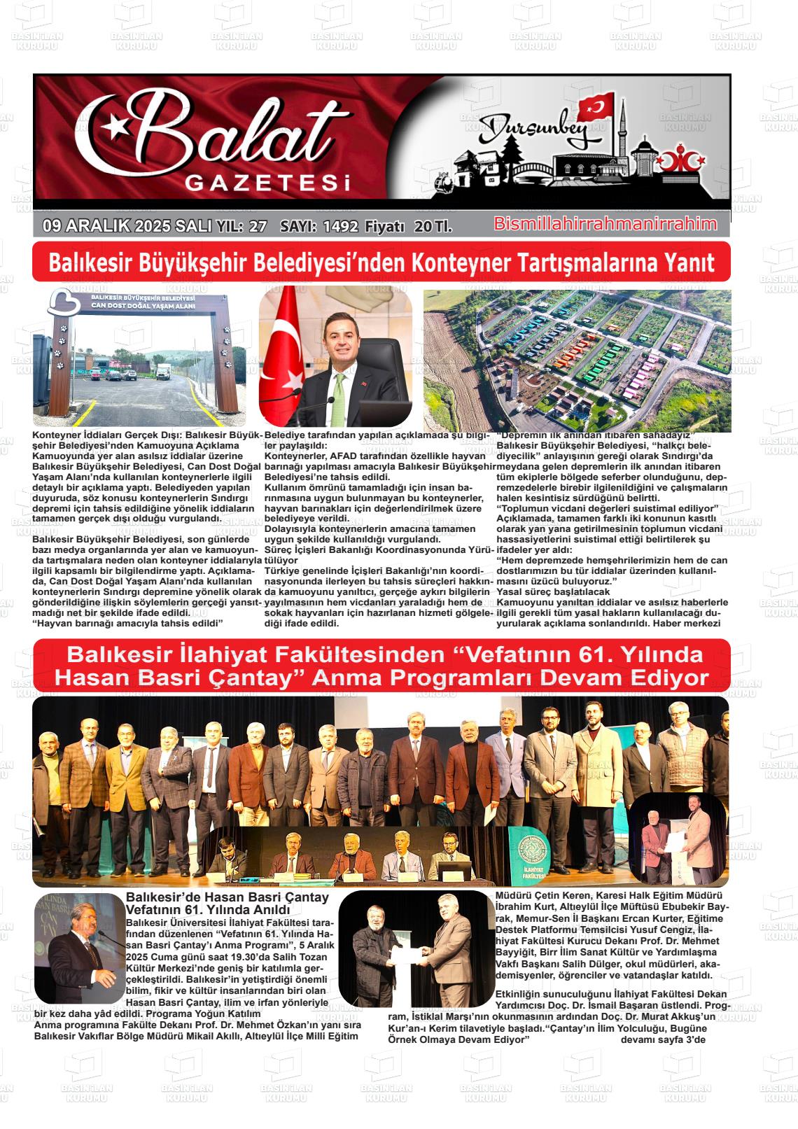 Balıkesİr Yerel Gazeteleri 03 Mart 2026, Salı Günü Manşeti