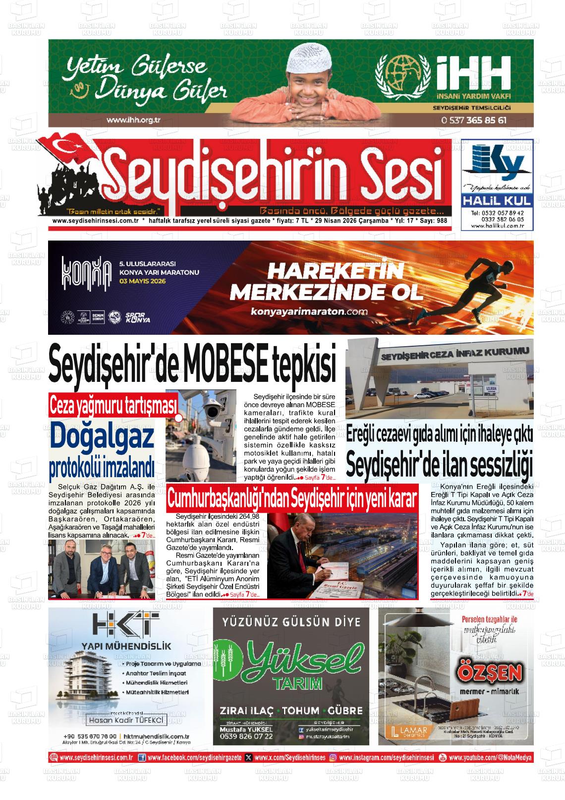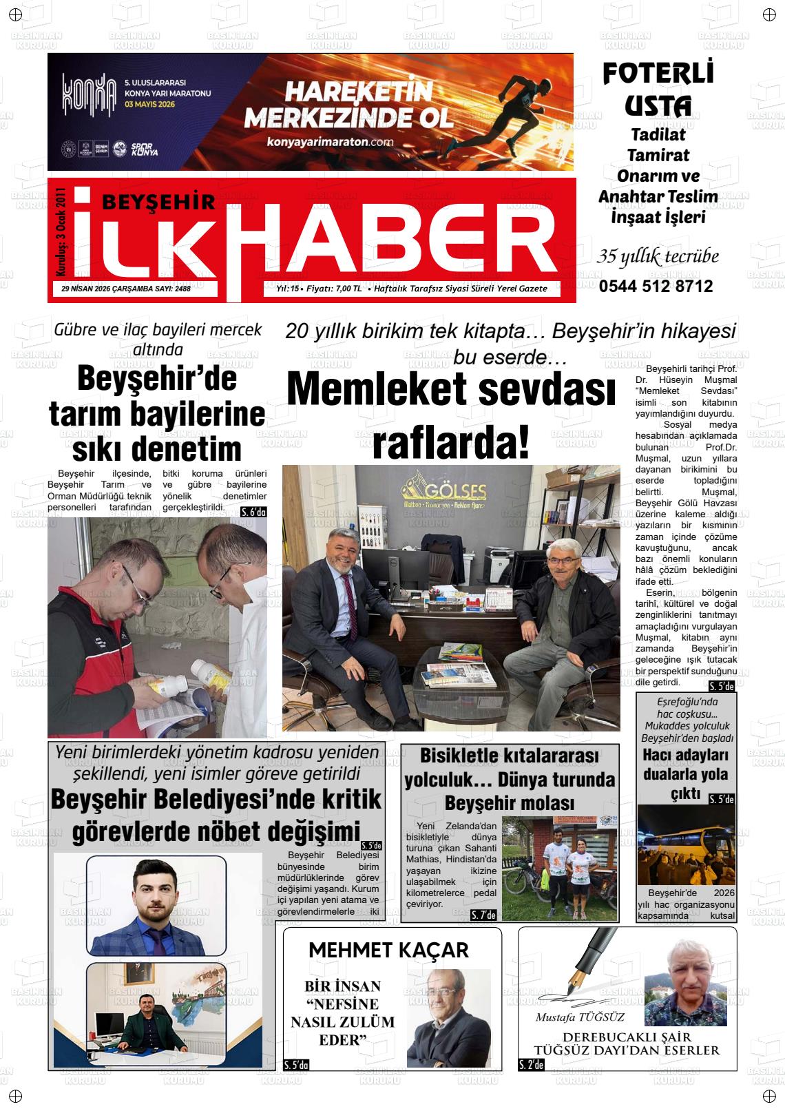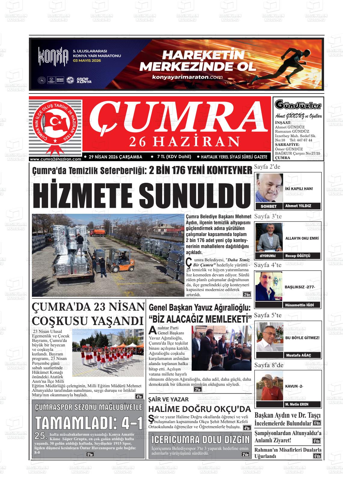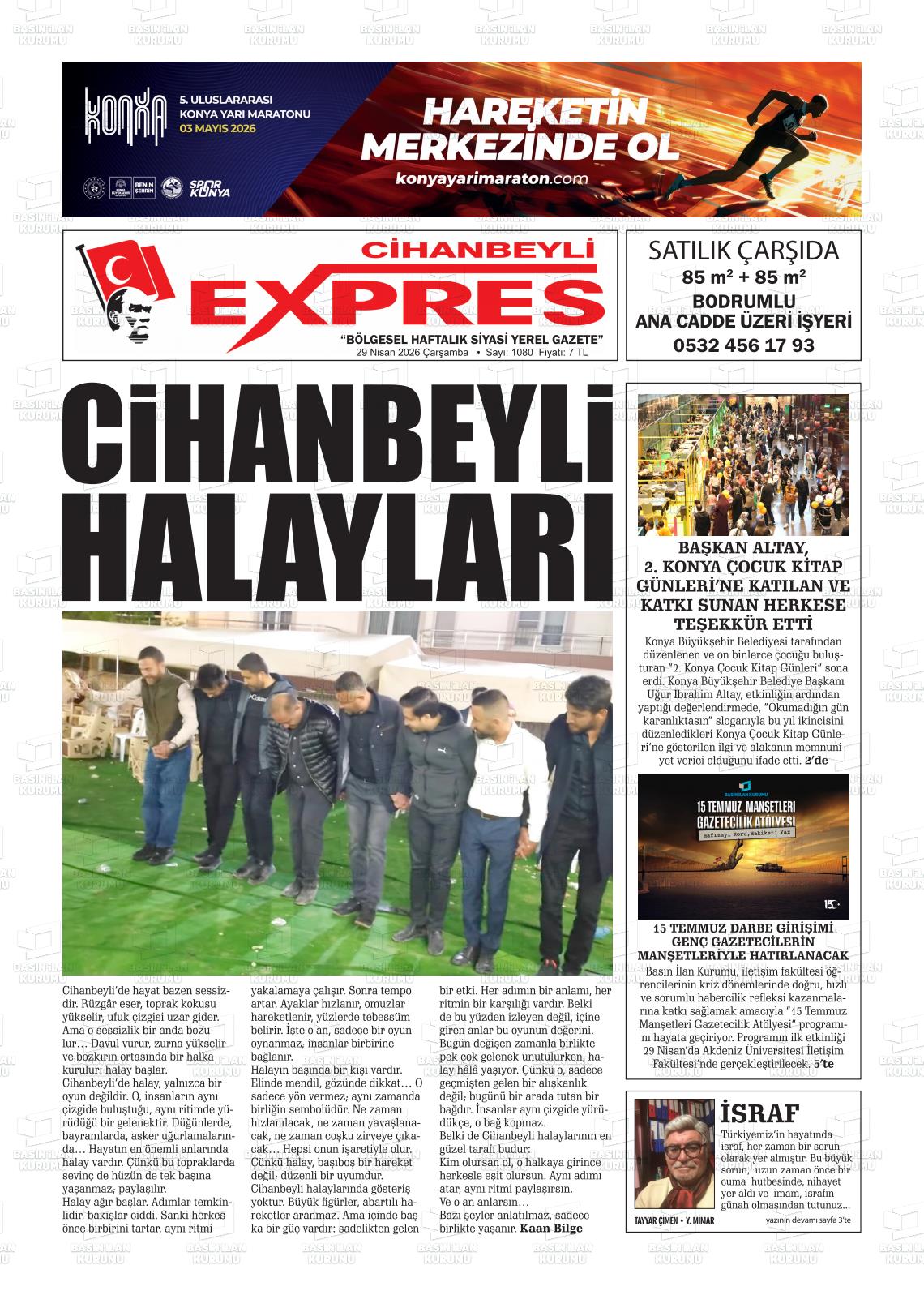 Konya Yerel Gazeteleri 29 Nisan 2026, Çarşamba Günü Manşeti