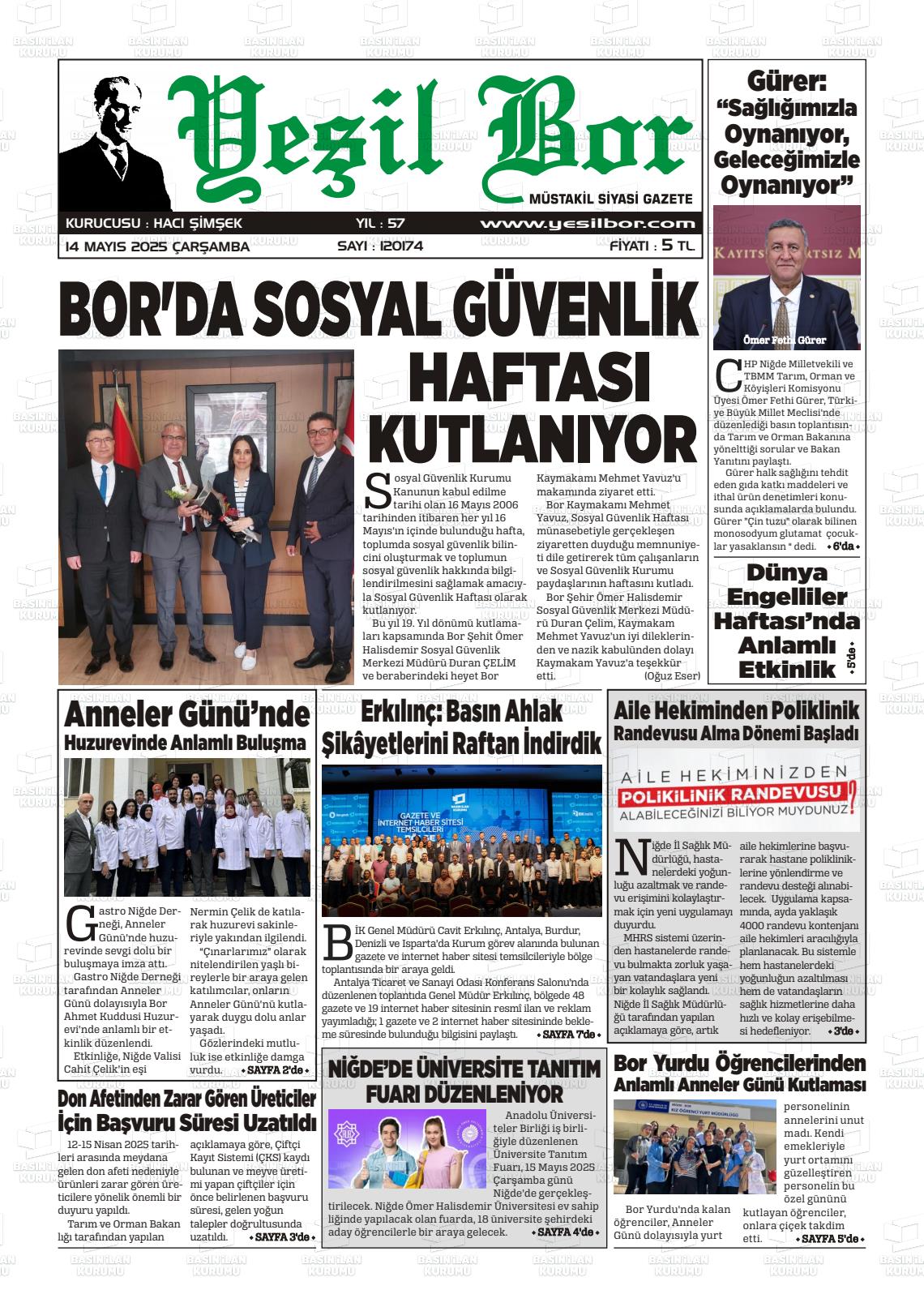 Nİğde Yerel Gazeteleri 29 Nisan 2026, Çarşamba Günü Manşeti